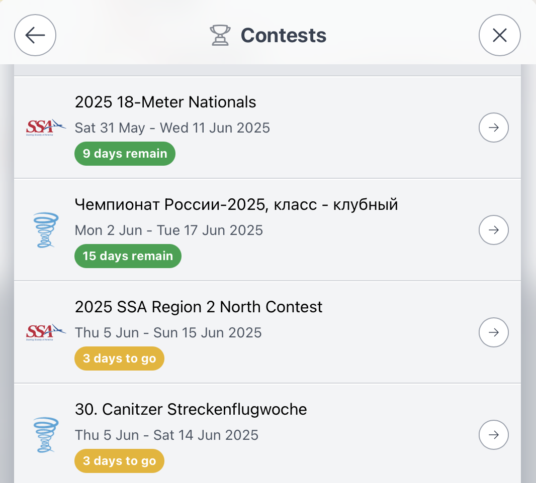 To view/load a contest use: Menu -> Contests from the PureTrack map, which will open the load contests panel: