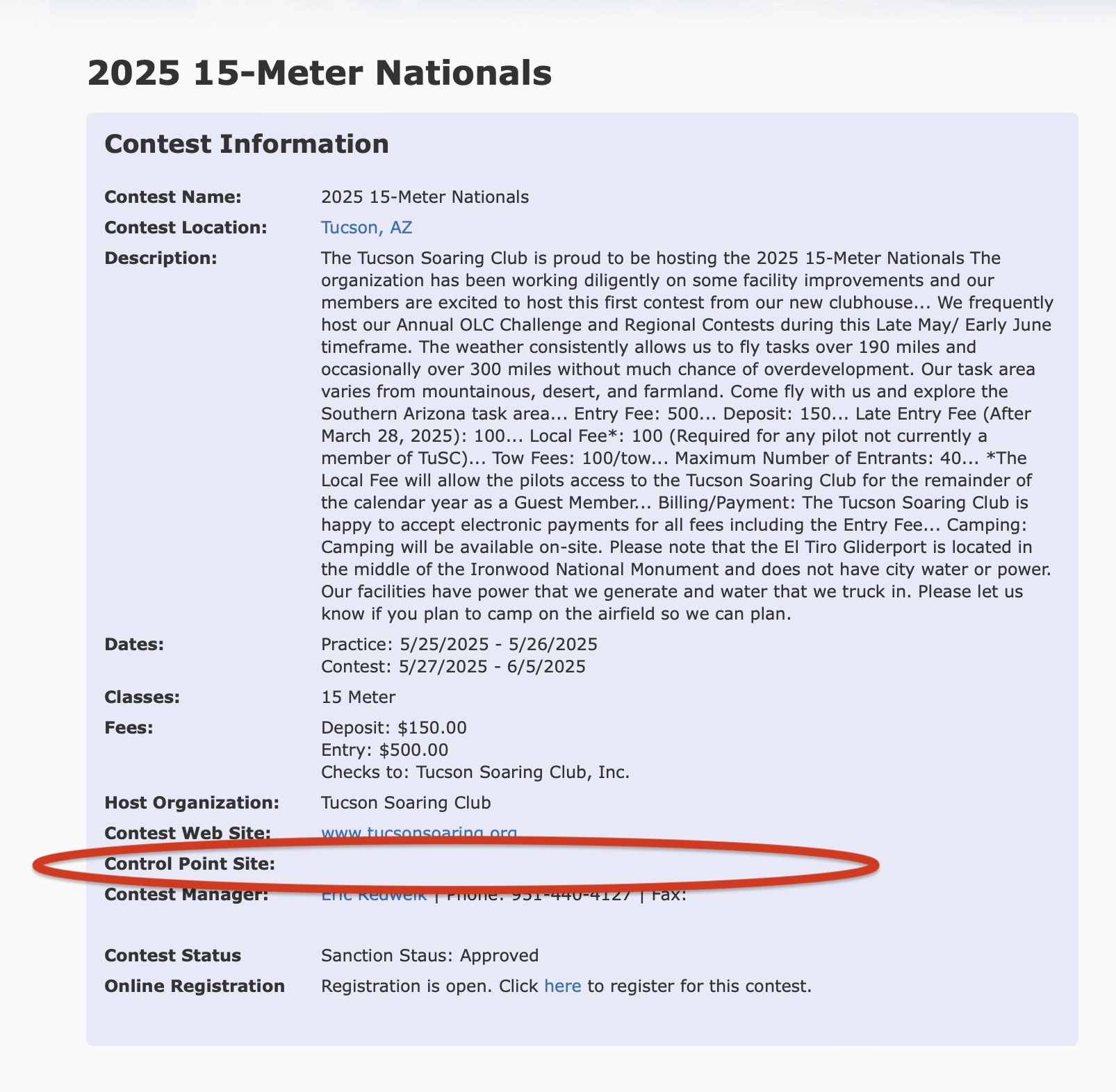 Note if a contest doesn't have the waypoints listed, contact us, we can add them manually.