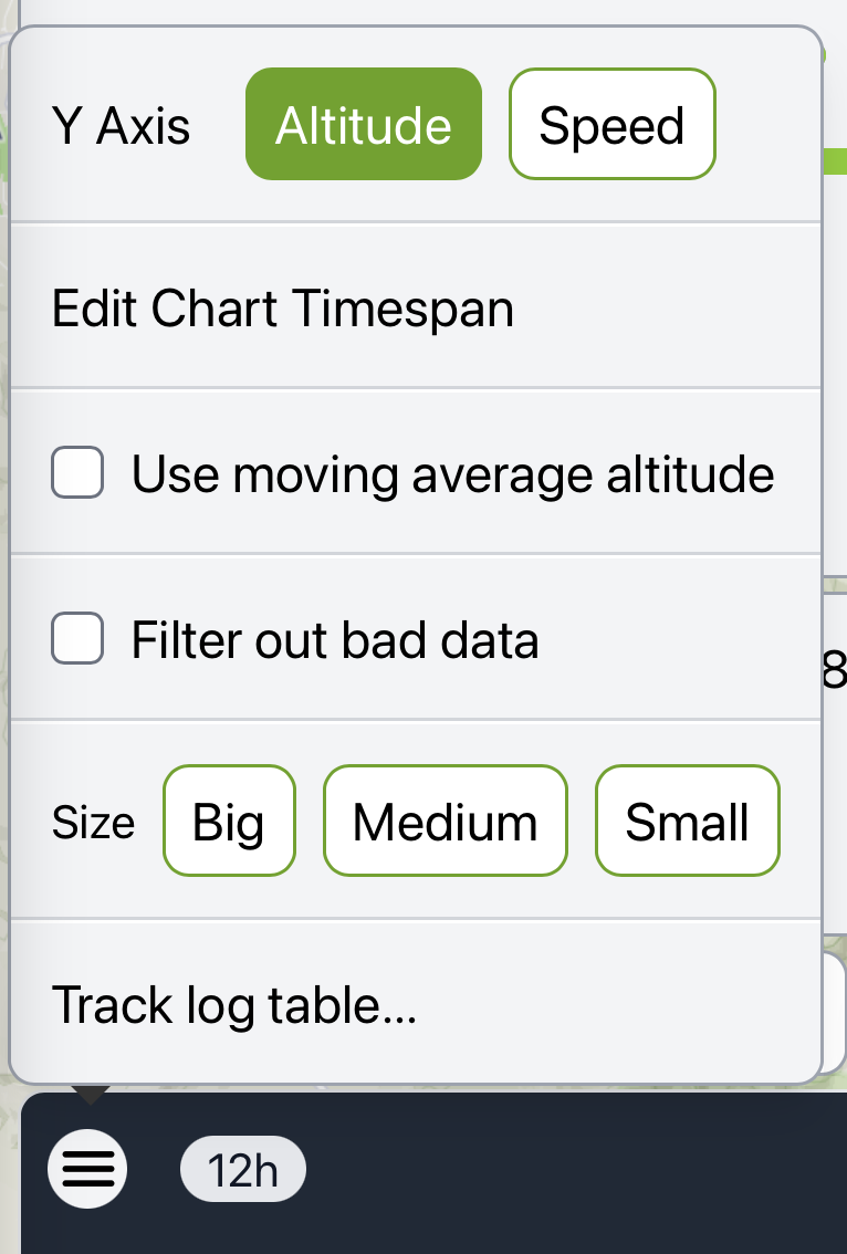 "Y Axis" Choose if you're looking at altitude or speed. Altitude also shows ground level. If viewing boats or vehicles, speed may be more useful.