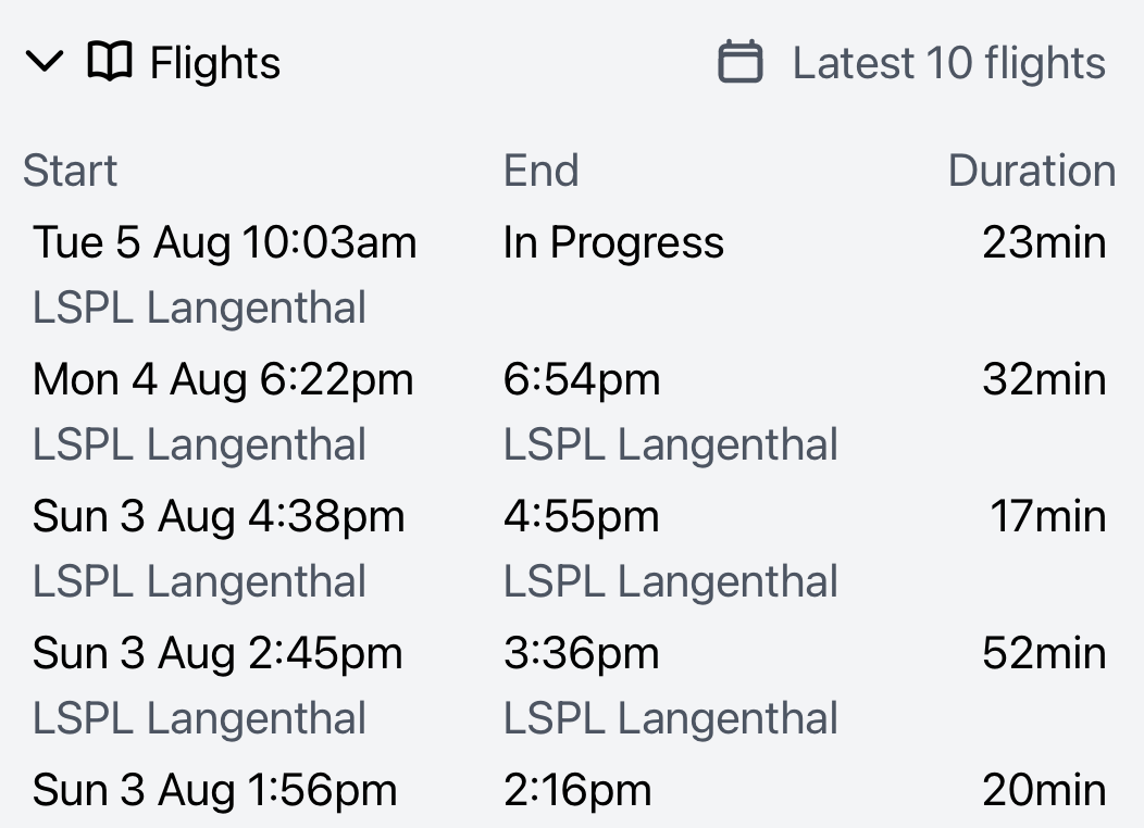 PureTrack attempts to identify take off and landings of aircraft. They are listed on the info panel for a selected map marker under "Flights".