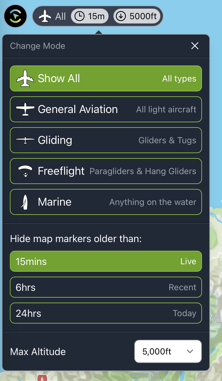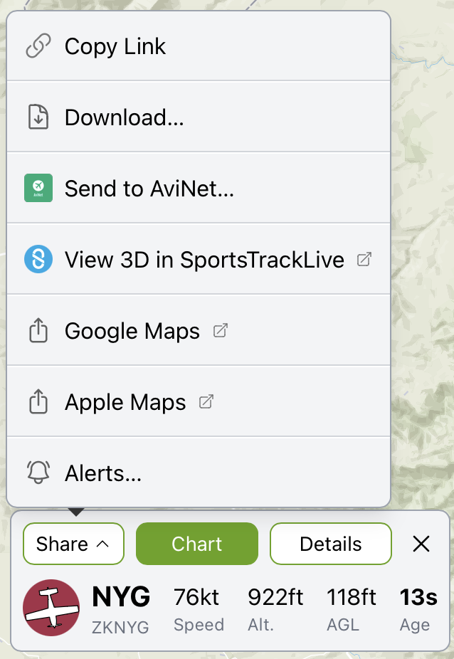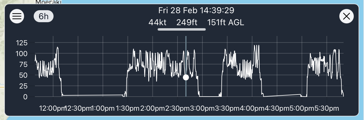 A new selected panel. Showing key stats. Click "Chart" to toggle the barograph chart on/off. Click "details" to toggle the full details panel on/off. The share menu is now easy to access, and now as links to Google and Apple maps.Many tweaks have been made to the barograph chart. For desktop users, hovering on the chart no longer jumps the map to a different time. Now a click is required. To revert to the previous behaviour, hold down shift and hover the mouse. Usage on a mobile device should be the same as previous. A green bar now shows what time is selected.